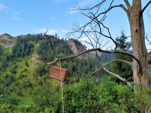 Dzięki specjalnie przygotowanym wcześniej medalom dzielimy się na dwie grupy i urządzamy grę terenową. Korzystając ze znaków odnajdujemy części mapy, które po ponownym spotkaniu, składamy w całość. Mapa wskazuje nam drogę do miejsca, gdzie znajdujemy „magiczną walizkę”. Walizka jest zamknięta, a otworzyć możemy ją za pomocą kodu. Z listu, który przywiązany jest do walizki wynika, że kod otrzymamy kolejnego dnia pod warunkiem, że dziś zbudujemy szałas. Schron z drewna, gałęzi, patyków i liści powstaje w mgnieniu oka 😉 Po południu deszcz chce pokrzyżować nasze plany, my wiemy, że nie ma złej pogody, a deszcz daje piękne możliwości zabawy.