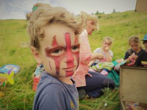 Ciągle mam wątpliwości czy to, co dzisiaj zaplanowaliśmy, wciągnie dzieciaki. A jednak… Chłopcy z pełną pasją robili łuki i dzidy, dziewczynki łapacze snów, a na twarzach pojawiły się indiańskie makijaże i uśmiechy. Wszyscy chętnie napadli na „białą wioskę”. Wniosek jest jeden: dzieci są „dzikie”, chłonne i otwarte na zabawę na podwórku, w naturze. Utwierdzamy się w tym każdego dnia, co napawa nas radością i satysfakcją.