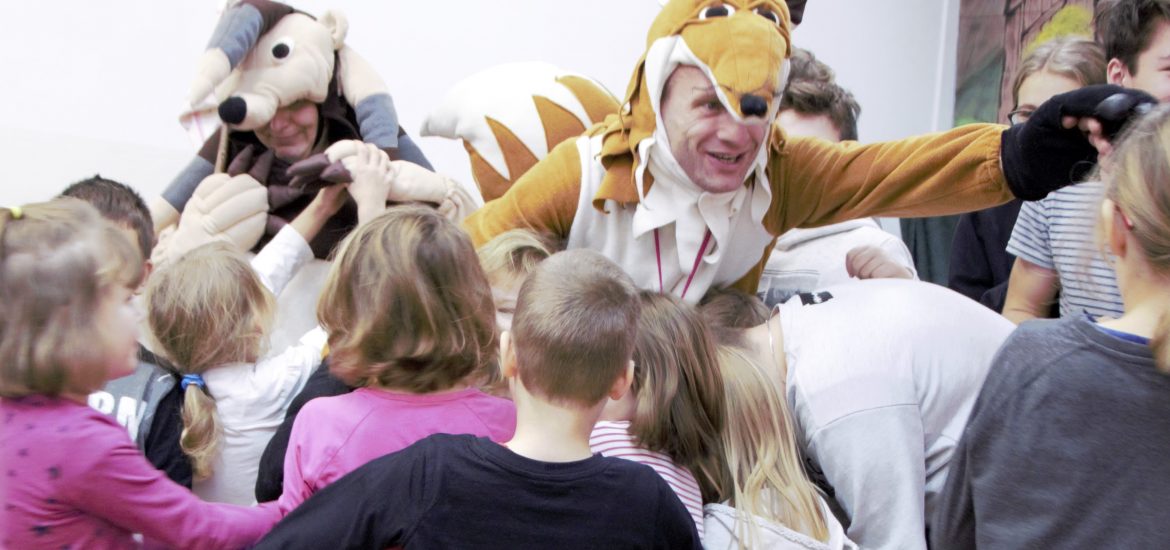 Spektakl „Wyprawa po skarb” nie jest nowością w naszym repertuarze. Dawno temu został odłożony na półkę w natłoku innych projektów i pomysłów, a i też wątpliwości czy chcemy kontynuować formę kostiumową. Niemniej treść tej bajki a przede wszystkim „tygodniowy program działań” mający na celu wzmacnianie wzorców przyjaźni jest zbyt dużą wartością byśmy mogli pozwolić żółknąć scenariuszowi. A i Lisek i Jeżyk nie czuli się szczęśliwi bez kontaktu z dziećmi. Reaktywowaliśmy widowisko i Lisek z Jeżykiem ponownie ruszyli w świat by dawać przykład miłości i przyjaźni.